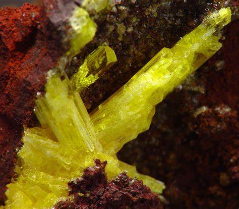 - Sulfur Crystals -- Often found in vivid yellow hues, but they're very soft and unstable.